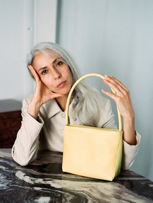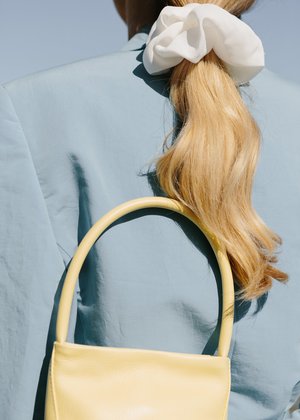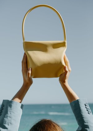 Our classic midi size handbag. Thoughtfully designed to service both functionality and glamour. Tailored with our signature a-symmetric angled front darts and a rounded leather shoulder handle, offering both structure and flexibility. Smooth butter yellow leather body / Leather tube handle / Interior leather pocket / Ykk zip opening / Cotton lining H x 18.5 cm W top x 24 W bottom x 21 cm D base x 10 cm Leather tube handle 53 cm Handmade in our studio / store in Auckland, New Zealand