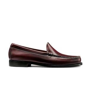 The Larson Venetian Loafer by GHBASS features a signature BASS Box Leather upper with handsewn moc stitching and beefroll detailing. Designed with an apron/moc toe, this slip-on loafer is unlined and set on a leather outsole. Weight: 500 grams. Heel height: 0.91". Sole thickness: 0.31". Style number: BAZ4W429. To care for your shoes, spot clean with a soft, damp cloth.