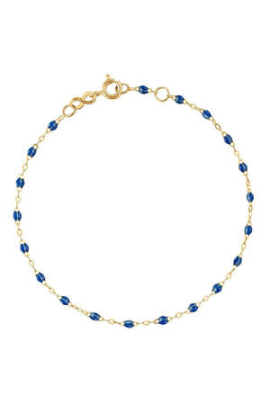 This classic gigi bracelet is handmade in the south of France and has a length of 6.7 inches, adjustable to 6.4 inches. Each jewel is unique and artisanally made in a family-owned workshop. Composition: 18ct gold and resin. Size: 6.7" with adjustable clasp at 6.3". Sapphire and 18K yellow gold.