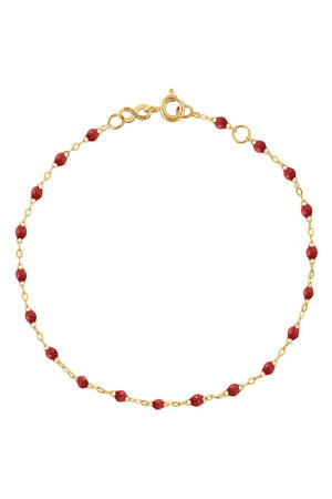 The Classic Gigi bracelet by Gigi Clozeau is handmade in the south of France. It has a length of 6.7 inches, adjustable to approximately 6.4 inches, and can be worn as a single strand or layered. The Classic Gigi collectsion is a celebration of life, color, and you. - Each jewel is unique, artisanally made in a family-owned workshop. - Composition: 18ct gold and resin - Size: 6.7" length with adjustable clasp
