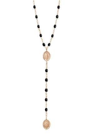Elegant madone rosary is handmade in the south of France and has a length of 16.5 inches, with dangling madone 3 inches from the first one. It's an idle piece to layer with long classic gigi necklace. The madone collectsion is a modern affirmation of personal faith and beauty. 18K ROSE GOLD + BLACK