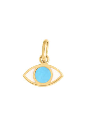 The Eye Resin Pendant by Gigi Clozeau features signature 18K yellow gold, rich turquoise resin, and a modern design inspired by classic symbolism. Each piece is unique and artisanally crafted in a family-owned workshop. Materials: 18K yellow gold and resin Size: 0.2" (with bail 0.4"). Pendant sold without chain.