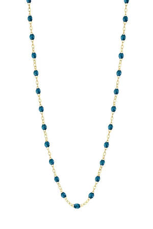 Designed by Alain Clozeau to celebrate the birth of his daughter, the classic gigi embodies spontaneity and hope. Handmade in the south of France, this necklace is 16.5 inches, adjustable to 15.75 inches. It can be worn as a single strand or layered. Materials: 18K yellow gold and resin (Jungle).