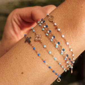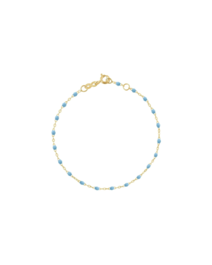The Classic Gigi bracelet by GIGICLOZEAU offers a fresh perspective with a touch of colorful inspiration, featuring signature 18 carat gold, multiple sizing options, and beautiful turquoise jewels.