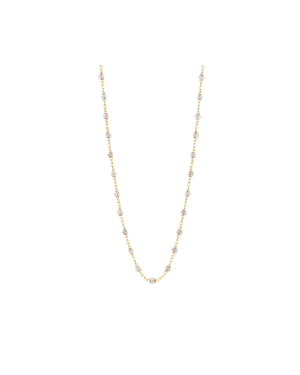 The Classic Gigi necklace by GIGICLOZEAU embodies the spontaneity and hope that life offers. This piece features 18 carat gold, varying 17.7" options, and glistening sparkle jewels. - Each jewel is unique, artisanally made in our family-owned workshop. - Composition: 18ct gold and resin - Size info: 17.7" with adjustable clasp at 17.3".