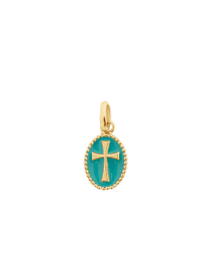 The Resin Cross gold pendant by gigi CLOZEAU is a bold reimagining of ancient symbols in a modern light. This piece features 18 carat gold, rich filled resin, and a timeless design to truly capture a sense of sophistication. Each jewel is unique and artisanally made in our family-owned workshop. Composition: 18ct gold and resin Size info: 0.36" (with bail 0.6"), pendant sold without chain.