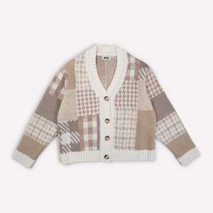 The petite GiGi take on classic patterns like plaid and houndstooth, patch-worked together in jacquard knits using favorite neutrals to create a cute mini version of the Patchwork Cardi. Features soft merino yarn that is comfy, breathable, and perfect for layering. Rendered in shades of beige, beige marl, and cream for easy mixing and matching with your favorite pieces. Details: - Knit with 100% Merino Wool - Resin button closures - Ribbed hem and cuffs - Aurora is 4 years old and wears size 4-5y