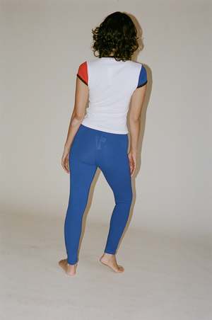 Gil Rodriguez Benton Legging in Lapis - Full length leggings featuring a super high waist and a wide, flattering elastic waistband. Made in USA from locally sourced, high-end cotton spandex jersey thats lightly sanded for a subtle velvety hand feel. - 90% Cotton 10% Spandex. - Fabric is forgiving. When in doubt, size down.