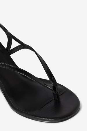 The Sandal Wedges by Gimagaus are glossy patent-leather wedge sandals in black, featuring minimalist straps at the toes and ankle and a 7.5 cm heel.