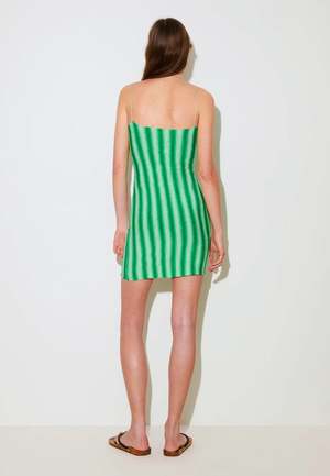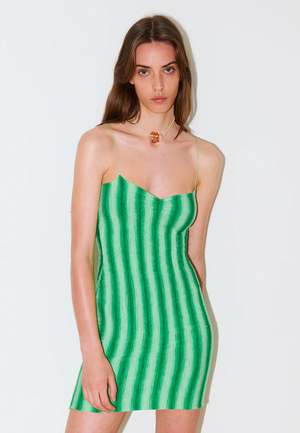 Gimagaus Simi Dress - Green Founded in 2018 by twins Claudia and Sayana Durany, Gimaguas is powered by relationships and conversation with the world around us. All Gimaguas pieces are designed in Barcelona Claudia and Sayanas hometown and most are proudly made in Spain. Sizing: Fitted - Shop to size Materials: 100% Viscose - Flattering as ever - Scoop-necked - Slim fit - Striped pattern - Gentle hand wash, dry flat and in the shade - Made in Spain Martina is 177cm and wears a size Small