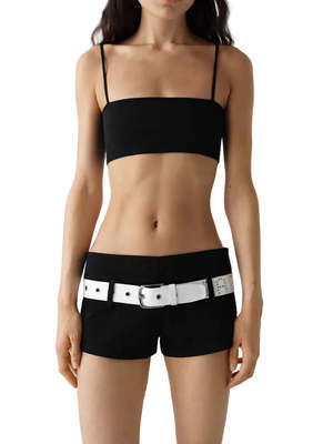 Black ribbed bra with square neckline. - Fitted silhouette - Thin straps - Back hook fastening - Stretch rib fabric - 100% cotton - Made in Portugal - Please note: all bras are FINAL SALE.
