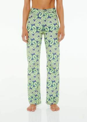 GIVE A POP OF COLOR TO A BASIC OUTFIT WITH THESE PRINTED TROUSERS! IN A PAISLEY PATTERN, CONTAINING BLUE, YELLOW AND GREEN; THEYRE SUPER EYE-CATCHING AND UNIQUE. THESE TROUSERS HAVE A RELAXED FIT AND ARE SLIGHTLY HIGH WAISTED. *runs small. 100% Organic Cotton Made in Portugal
