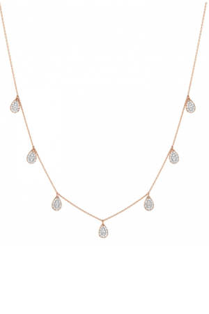 Notes For all items of Buddha line : Buddhas tear. When it touches the ground, it brings life to earth and makes it fertile. A gentle symbol of peace over war Composition 18 karat rose gold necklace and diamonds (0,32 ct), Measurements 17" motifs size : 0,24"X0,15" Care Professional Jewelry Care