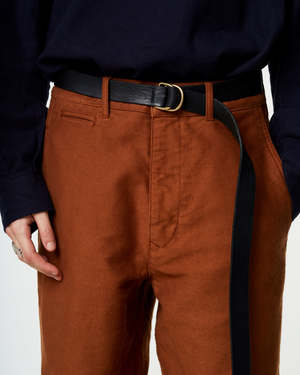 The G.o.D. Reno fit is what we'd call the perfect classic chino. High waist, loose fit, straight legs. Featuring a zip fly with a 2 button-through closure, slant pockets and coin pocket on the front, 1 piped and 1 applied pocket on the back. These were made from a British heavy gabardine. Made by Girls of Dust CONTENT & CARE: 100% Cotton / British heavy gabardine