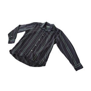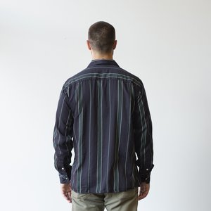 This lightweight long sleeve camp shirt from Gitman Vintage features green and navy stripes. - 62% cotton 38% tencel - Open-collar camp shirt features a relaxed fit with a straight hemmed bottom designed to fall just at the waist - Made in USA - Model is 5'11"/170 lbs. and wears size Medium