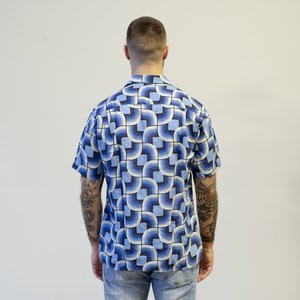 A playful camp shirt by Gitman Vintage in a beautiful linen fabric with a mid-century style print which is an ode to Italian architect Gio Ponti. - 100% Linen - Open-collar camp shirt features a relaxed fit with a straight hemmed bottom designed to fall just at the waist - Made in USA - Model is 5'11"/170 lbs. and wears size Medium