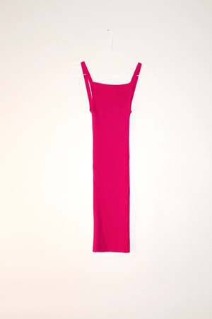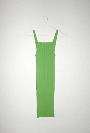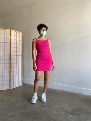 Shrunken ribbed camisole slip dress. Cotton/Nylon/Lycra Garment Length (in inches), measurements taken lying flat: [XS] 31" length from top of strap. [S] 32" length from top of strap. [M] 33" length from top of strap. [L] 34" length from top of strap.