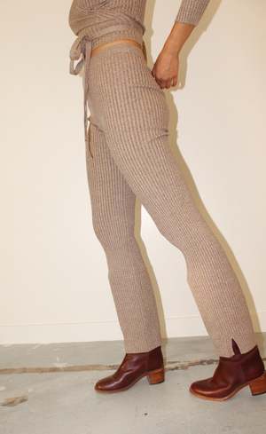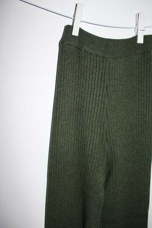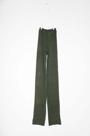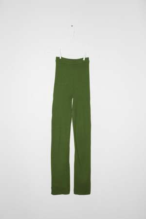 Extra Long Shrunken Ribbed Layer Pant, with a straight-leg trouser fit and high-waist. Cotton/Nylon/Lycra Garment Length (in inches), measurements taken lying flat: [XS] 30" inseam and 10.5" rise. [S] 30.5" inseam and 11" rise. [M] 31" inseam and 11" rise. [L] 31" inseam and 11" rise. [XL] 32" inseam and 11" rise.