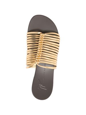 Women > Shoes > Sandals gold-tone laminated leather straps with intertwined straps and a leather sole. Composition: 100% Leather.