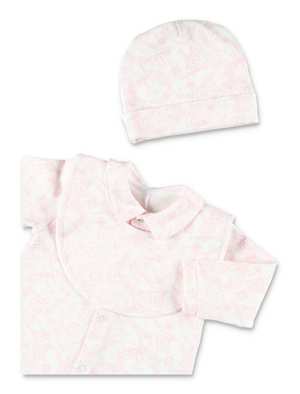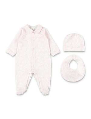 Baby Boys > Clothing > Bodysuits & Sets The Golden Goose Baby Cotton Gift Set combines comfort and vintage-inspired charm in a refined newborn essential. Made from soft white cotton, this coordinated set reflects a seventies-inspired aesthetic with a timeless, casual appeal. The all-over peach-pink Golden mascot print adds a playful yet delicate note, making it ideal for everyday wear or special occasions. Designed as a complete ensemble, it offers both style and practicality from the very first days. - Soft cotton construction - All-over peach-pink Golden mascot print - Romper suit with rounded collar - Snap-button closure for easy dressing - Matching hat - Coordinated bib Composition: 95% cotton, 5% spandex.