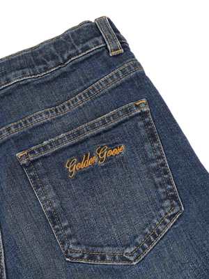 Girls > Clothing > Bottoms Journey bootcut medium washed blue denim with contrast stitching and embroidery. Composition: 99% cotton, 1% spandex. Pocket lining: 100% cotton. Insert: 100% polyester.