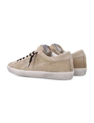 Men > Shoes > Sneakers The Golden Goose Super-Star sneakers are crafted in premium beige suede with the signature star detail on the side. Featuring black laces, a vintage-finished sole, and the GGDB logo2 on the heel, these low-top sneakers combine casual style with iconic Golden Goose craftsmanship. - Beige suede upper - Signature star on the side - Black laces - Rubber sole - GGDB logo2 on the heel - Low-top silhouette - Vintage finish Composition: - Upper: 86% cow leather, 14% ovine leather - Lining: 44% cotton, 25% cow leather, 20% polyurethane, 6% polyester, 5% viscose - Sole: 100% rubber