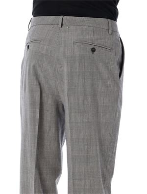 Men > Clothing > Pants > Pants The slim-fit pants by Golden Goose are tailored from refined Prince of Wales checked fabric, delivering a sophisticated balance of classic menswear and contemporary attitude. Designed with a clean silhouette, they feature premium finishes and functional detailing, ideal for elevated everyday looks and modern formal styling. - Prince of Wales check fabric - Slim fit - Front pockets - Back welt pockets with horn buttons - Front fastening with horn button, metal hook, and zip - Belt loops - Double star detail on the back Andrea is 1.90 m and wears size 48. Composition: 100% virgin wool. Lining: 100% viscose.