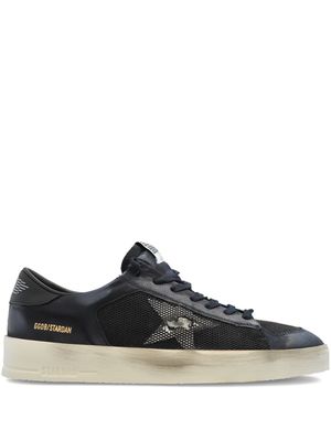 Men > Shoes > Sneakers Golden Goose Stardan "Multicolor" sneakers. Origin: Italy Features - Blue side logo2 print - Front lace-up closure - Round toe - Flat sole Composition - Outer: 100% calfskin, 100% fabric - Lining: 100% fabric - Sole: 100% rubber Detailed Composition - Upper: 77% cow leather, 16% polyamide, 7% spandex - Lining: 41% cotton, 26% cow leather, 16% polyurethane textile, 12% goat leather, 5% viscose - Sole: 100% rubber