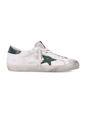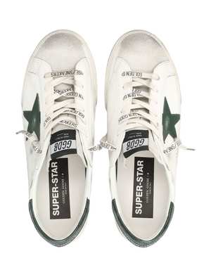 Men > Shoes > Sneakers The Golden Goose Super Star Sneakers embody a refined casual attitude through the brands signature lived-in aesthetic. Crafted in white leather, they feature a contrasting green star and intentionally distressed details that make each pair unique. A contemporary icon that blends Italian craftsmanship, everyday comfort, and a distinctive, effortlessly cool identity. Leather upper Suede toe Green contrast side star Green heel insert Rubber sole Lace-up fastening Worn-effect finish Composition: Upper: 52% goat leather, 48% cow leather Lining: 41% cotton, 31% cow leather, 18% polyurethane, 6% polyester, 4% viscose Sole: 100% rubber