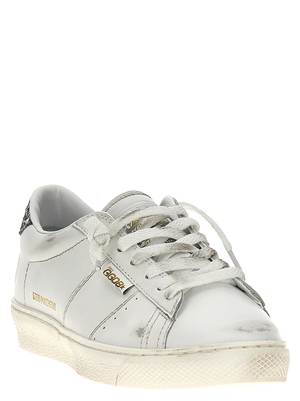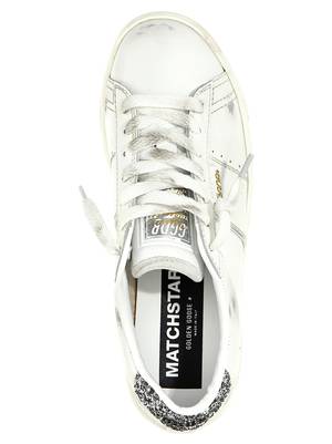 'Matchstar' leather sneakers with used-effect details, glitter heel, lace-up closure, and rubber sole. Composition: 97% Leather, 2% PBT, 1% Cotton.