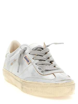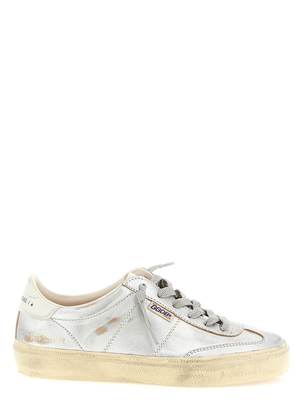Women > Shoes > Sneakers 'Soul Star' sneakers in silver metallic leather with contrasting heel, lace-up closure, and rubber sole. Composition: 96% cow leather, 4% goat leather.