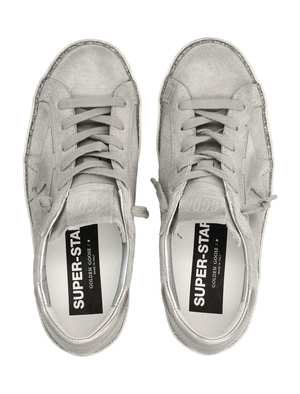 Women > Shoes > Sneakers Effortlessly blending luxury and casual cool, these Super-star sneakers feature a distressed suede upper with metallic heel detailing for a worn-in, artisanal look. A glitter trim around the sole adds a playful touch, while the classic lace-up closure ensures a secure fit. The cushioned insole provides comfort for all-day wear, and the rubber sole delivers grip and durability. Suede upper with vintage finish Metallic heel detail Glitter trim on midsole Lace-up closure Rubber sole with herringbone tread Cushioned insole Golden Goose branding on side, heel, and tongue Composition: Upper: 96% cow leather, 4% goat leather Lining: 41% cotton, 31% cow leather, 19% goat leather, 7% polyester, 2% polyurethane Sole: 100% rubber