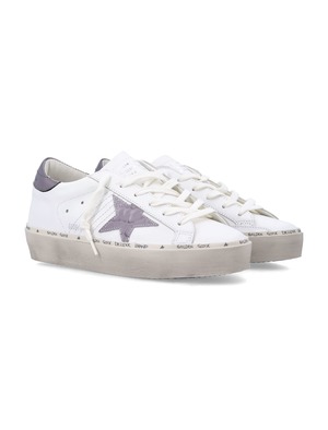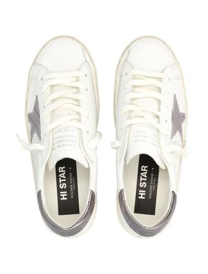 Women > Shoes > Sneakers The Hi Star sneakers by Golden Goose reinterpret the brands iconic silhouette with refined laminated accents. Crafted in white leather, they feature a bio-based metallic star with croco effect and matching heel tab, set on an elevated foxing sole with the labels signature worn effect. A contemporary update that balances shine, comfort, and everyday versatility. - White leather upper - Laminated croco-effect bio-based star patch - Laminated heel tab - Elevated Hi Star sole with worn finish - Lace-up fastening - Rubber sole with herringbone tread Composition: - Upper: 100% cow leather - Lining: 41% cotton, 31% cow leather, 18% polyurethane, 7% polyester, 3% viscose - Sole: 100% thermoplastic polyurethane