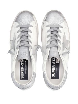 Women > Shoes > Sneakers Golden Goose Super-Star Sneakers in white calfskin leather. Origin: Italy Features: - White colorway - Lace-up closure - Logo detail - Round toe - Flat rubber sole Composition: - Outer/Upper: 100% calfskin (cow leather) - Lining: 60% cow leather, 40% cotton - Sole: 100% rubber