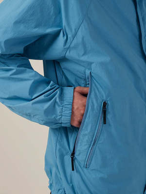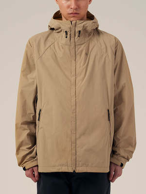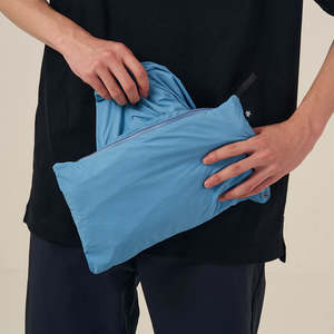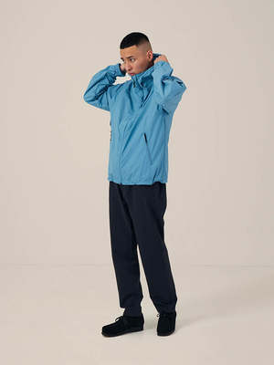 Eco-friendly windbreaker made of natural-dyed recycled material. Perfect for daily use, business travel and vacations. - Silhouette can be adjusted with drawcord at the hem. - Detachable hood. - The coat is packable into the zipper pocket at right underarm pocket. - Made of recycled nylon with water-repellent coating. - 45 denier rip-stop material. - Dense material with firm cotton-like texture. - Color dye derived from Olives.