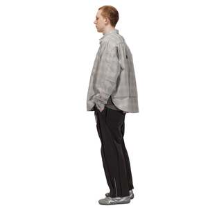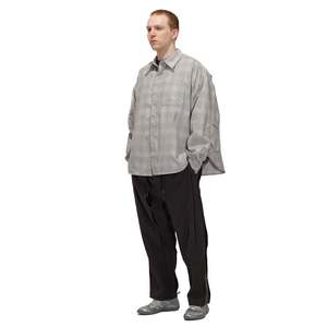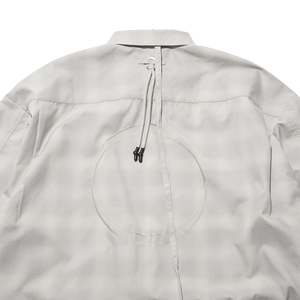 Details: - This design features a boxy silhouette in a plaid pattern, with a sharp collar and front strap for tie pairing, with side opening for layering design. The back showcases embroidered double circles, and a detachable rope threaded through a metal ring. The oversized fit blends tailored structure with relaxed proportions, and the fabric, pre-dyed before weaving. - 100% Polyester - DWR coating, water repellent - Detachable rope - Strap at back collar - Chest pocket at left Sizing: - Relaxed fit - Emerson s 180cm / 70kg, wearing size 2