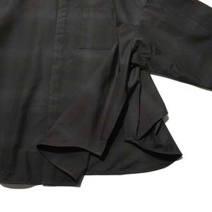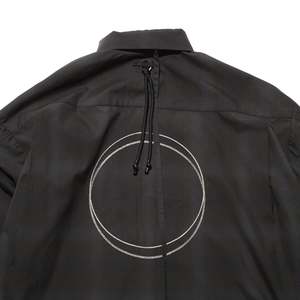Details: - This design features a boxy silhouette in a plaid pattern, with a sharp collar and front strap for tie pairing, with side opening for layering design. The back showcases embroidered double circles, and a detachable rope threaded through a metal ring. The oversized fit blends tailored structure with relaxed proportions, and the fabric, pre-dyed before weaving. - 100% Polyester - DWR coating, water repellent - Detachable rope - Strap at back collar - Chest pocket at left Sizing: - Relaxed fit - Emerson s 180cm / 70kg, wearing size 2