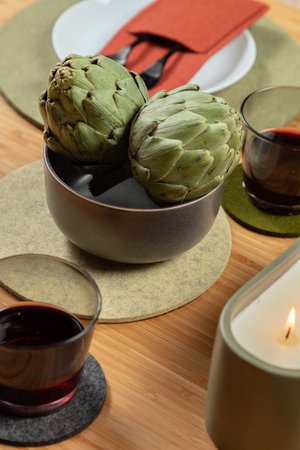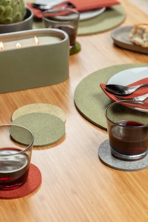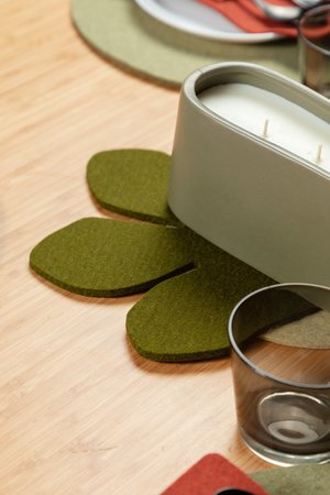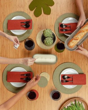 The Ikebana Set is a Graf Lantz staple, where materials meld into art, and simplicity is key. Our Round 12" Trivets moonlight as the perfect placemat, especially for a smaller table. --- Includes - Round 12" Trivet - 4 Pack in Sage - Bierfilzl Round Coaster - 6 Pack Mixed in Ikebana - Two Kigu Pocket - 2 Pack in Mahogany - 8" Round Trivet in Champagne - Fig Leaf Trivet in Moss Benefits of Merino Wool Felt - Sustainable, biodegradable, and renewable - Odor, stain, heat, and dirt resistant - Oeko-Tex Certified - See all the benefits of our felt - How to clean and care for your felt