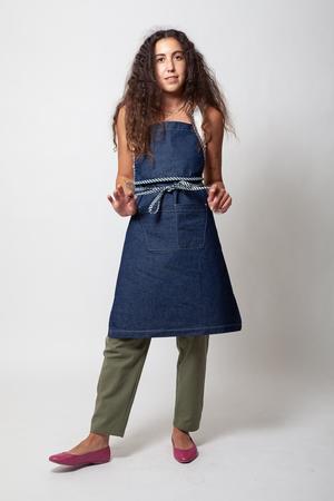 Whether youre the kind of home cook that needs full splatter protection or prefer a trimmer, around-the-waist-only approach, this apron has you covered (get it?). Constructed so that the bib stays up or flips discretely down, it ties at the neck and waist for total adjustability and features two versatile front pockets.