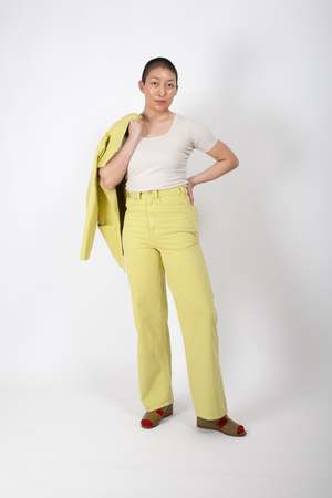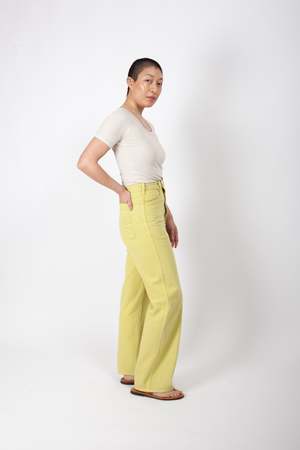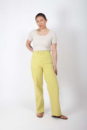 The Placer Pants are long-time best-sellers, widely adored for fitting a range of bodies. With a very high rise, the tall waist narrows neatly without binding. A long and generous leg accommodates butts and thighs. Featuring deep front and back pockets and the exceptional construction and materials used across all G&G denim styles. Materials + Care This garment is made from 11 ounce, 100% cotton twill, woven by Cone Mills. It has been dyed and washed after sewing, thereby removing additional shrinkage and bringing out the texture and character of the fabric. We generally encourage a light wash and line dry to extend the life of your clothing, but this garment can stand up to machine washing if needed. Size + Fit Find more information in the size guide. Madison is wearing a size 27. Madison is Height: 5 ft 7 in, Bust: 35 in, Waist: 27 in, Hips: 37.5 in.