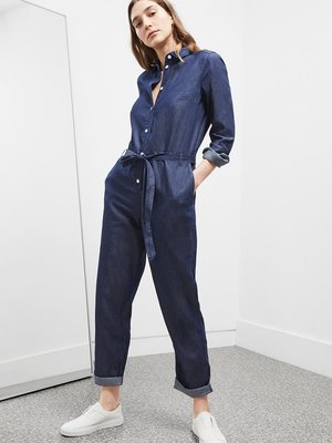For cool, comfortable style with a subtle statement, the Great Plains Darla Lightweight Denim Jumpsuit. A long-sleeved lightweight jumpsuit, the Darla is a button-down one-piece with a classic boiler-suit shape. Cinch the soft denim in at the waist for a more emphasised shape, and pair with trainers for effortlessly cool weekend style. - 100% Cotton - Long-sleeved denim jumpsuit - Fabric: light, soft, smooth cotton - Button front - Long sleeves - Point collar - Belt loops - Machine wash