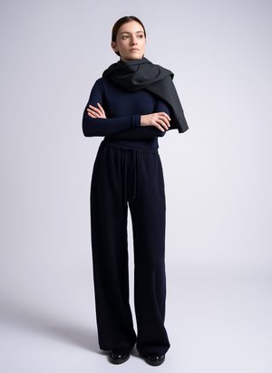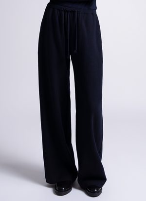 Bold structure. This wide leg Easy Pant is a blend of ease and grace. Constructed in a brushed woolen blend fabric which gives structure to this truly easy silhouette. The most sophisticated easy pant youll ever own. - Relaxed fit - 85% Wool / 14% Nylon / 1% Spandex - Lining: 100% Bemberg Rayon - Brushed wool blend fabric - Elastic waistband - Woven draw cord - Side seam pockets - Wide straight leg - Half lined Model is wearing size S. She is 5 7 & wears a US size 2.