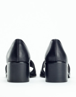 The Grey City Ditty Sandal in Black. - D'orsay sandal with chunky stacked heel in black calf leather - 2.25" stacked block heel - Leather insole and interior - Color: Black - Calf leather upper - Man made sole - Imported
