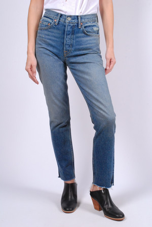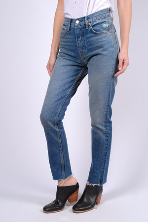 GRLFRND Karolina High Rise in Whole Lotta Love. Skinny leg with a high waist & no stretch. Re-positioned back pockets. Raw hem. Distressed areas throughout. Fabric 100% Cotton Model 5'4 wearing size 24 | Model wears a size XS (0) in tops and size 24 (0) in bottoms Fit true to size Machine wash cold Made in USA