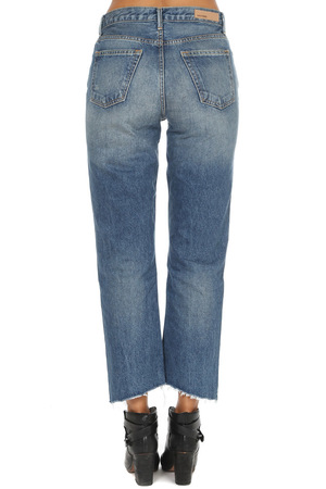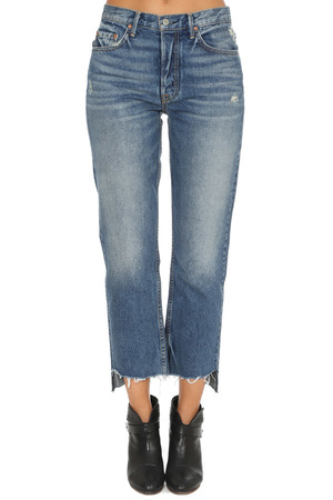 A relaxed fit lends a casual look to these straight leg jeans. An unfinished step hem and gentle fading complete the look.- Color: Close To You- 100% Cotton- Made in USA - Style #: GF400553-S17- Machine Wash Cold* Model is 5'9 wearing size 27 | Women's GRLFRND Helena High Rise Crop Pants in Close To You
