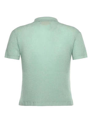 The Shrunken Polo by Guest in Residence is an extra lightweight waffle knit. This preppy cashmere polo sweater transitions from tailored office looks to casual weekend wear, and can be effortlessly worn with jeans. Product Details Designer ID: W10111WF Color: Seaglass Composition: 100% Cashmere Imported