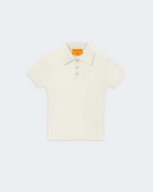 Women's sizing, intended to fit true to size. Polo shirt collar with three-button front placket. Textured waffle stitch. Signature GIR branding at center back neck. Extra lightweight waffle knit. 100% cashmere.