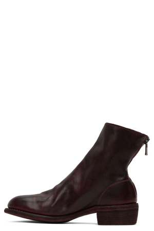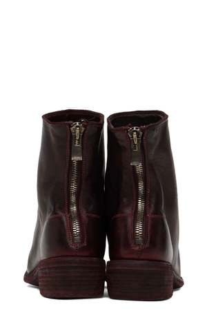 Guidi is steeped in history and Italian craftsmanship established as Conceria Guidi Rosellini. Today Guidi is balancing tradition with latest technology with styles such as the Guidi 796 Burgundy showcasing their expertise in leather and modern avant-garde design. Full-grain horse leather boots in burgundy dye. Signature zip closure at back. Topstitching in grey at Goodyear welt. Stacked leather heel. Leather sole. Logo-engraved antiqued silver-tone hardware. Heel: 4.45 cm Colour: Burgundy. Composition: Horse Leather. Handmade in Italy