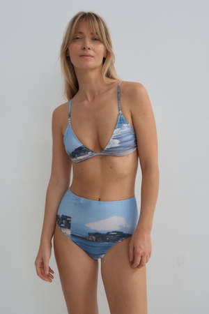 A classic high-waist swimwear bottom with flattering front panel details and moderate coverage for a streamlined fit. Designed to mix and match effortlessly. 78% recycled polyamide / 22% Italian lycra Sustainable swimwear High waist bikini Moderate coverage behind Fully lined Quick dry UPF 50+ Coco is 173cm tall and is wearing a size 2.