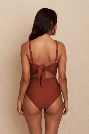 A universally flattering one-piece, the Mariposa Maillot features a V-neckline that suits both a small and larger bust. Wider straps offer coverage, while the tie back gives additional support and the perfect fit under the bust. With detachable straps, this versatile piece will stand up in the surf and can also be worn as a halter, or a top under your favourite summer pants. Suits both small and large bust Tie back Adjustable + detachable straps Fully lined Elastic key loop Thick nylon / spandex fabric contours and supports Tahnee is 170cm tall, dress size 8-10 AU with a 10D cup and is wearing a size 8 AU. Penelope is 180cm tall, dress size 10-12 AU with a 12D cup and is wearing a size 12 AU. All sizes are in AU
